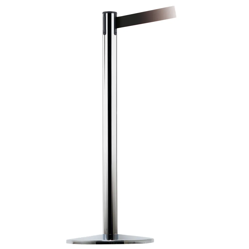 Sølvfarget stolpe, med sort uttrekkbart bånd på 1,8m.