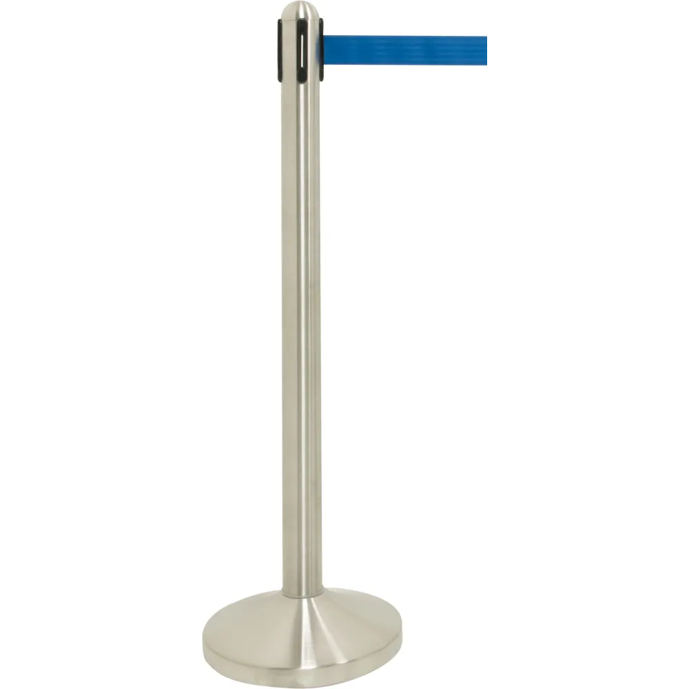 Sølvfarget stolpe, med blått uttrekkbart bånd på 2,1m.