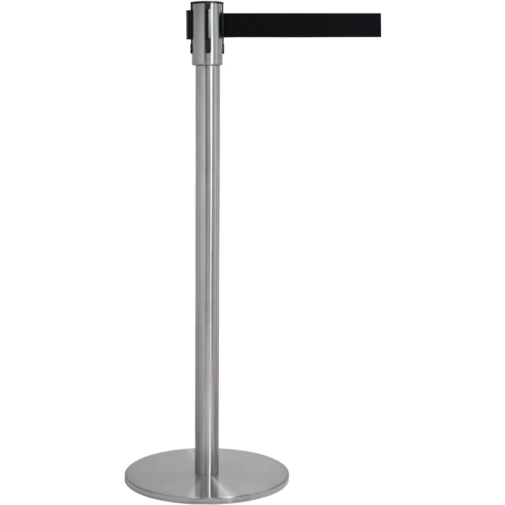 Sølvfarget stolpe, med sort uttrekkbart bånd på 2,3m.